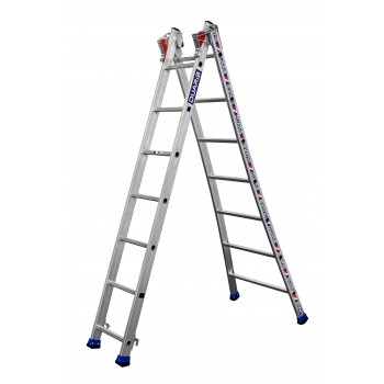Echelle transformable 2 plans professionnelle. 3 positions : échelle d'appui, autostable et en dénivelés.